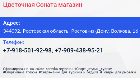 Цветочная Соната, магазин по адресу 344092, Ростовская область, Ростов-на-Дону, Волкова, 16 в дальнейшем Организация, размещена в следующих категориях: