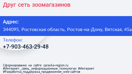 Друг, сеть зоомагазинов по адресу 344095, Ростовская область, Ростов-на-Дону, Вятская, 45а в дальнейшем Организация, размещена в следующих категориях: