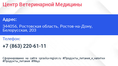 Центр Ветеринарной Медицины по адресу 344056, Ростовская область, Ростов-на-Дону, Белорусская, 203 в дальнейшем Организация, размещена в следующих категориях: