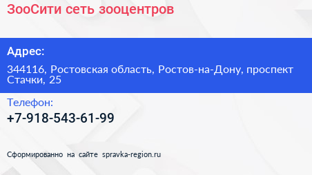 ЗооСити, сеть зооцентров по адресу 344116, Ростовская область, Ростов-на-Дону, проспект Стачки, 25 в дальнейшем Организация, размещена в следующих категориях: