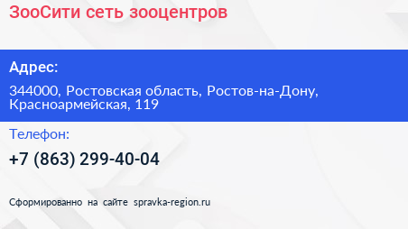 ЗооСити, сеть зооцентров по адресу 344000, Ростовская область, Ростов-на-Дону, Красноармейская, 119 в дальнейшем Организация, размещена в следующих категориях: