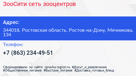 ЗооСити, сеть зооцентров по адресу 344018, Ростовская область, Ростов-на-Дону, Мечникова, 134 в дальнейшем Организация, размещена в следующих категориях:
