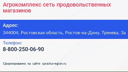 Агрокомплекс, сеть продовольственных магазинов по адресу 344004, Ростовская область, Ростов-на-Дону, Тренева, 3а в дальнейшем Организация, размещена в следующих категориях: