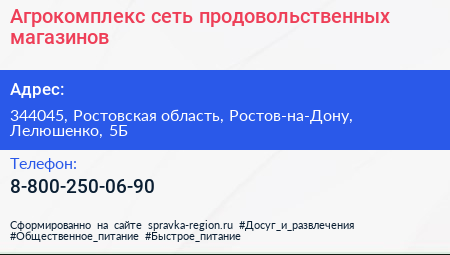 Агрокомплекс, сеть продовольственных магазинов по адресу 344045, Ростовская область, Ростов-на-Дону, Лелюшенко, 5Б в дальнейшем Организация, размещена в следующих категориях: