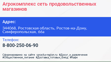 Агрокомплекс, сеть продовольственных магазинов по адресу 344068, Ростовская область, Ростов-на-Дону, Симферопольская, 66а в дальнейшем Организация, размещена в следующих категориях: