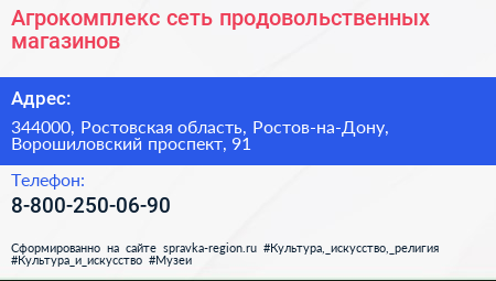 Агрокомплекс, сеть продовольственных магазинов по адресу 344000, Ростовская область, Ростов-на-Дону, Ворошиловский проспект, 91 в дальнейшем Организация, размещена в следующих категориях: