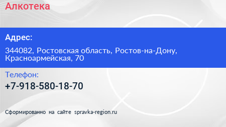 Алкотека по адресу 344082, Ростовская область, Ростов-на-Дону, Красноармейская, 70 в дальнейшем Организация, размещена в следующих категориях: