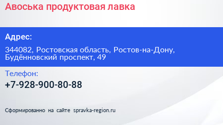 Авоська, продуктовая лавка по адресу 344082, Ростовская область, Ростов-на-Дону, Будённовский проспект, 49 в дальнейшем Организация, размещена в следующих категориях: