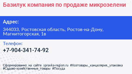 Базилук, компания по продаже микрозелени по адресу 344033, Ростовская область, Ростов-на-Дону, Магнитогорская, 1в в дальнейшем Организация, размещена в следующих категориях: