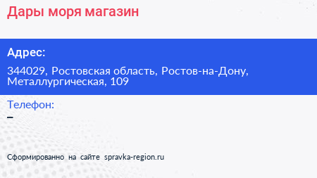 Дары моря, магазин по адресу 344029, Ростовская область, Ростов-на-Дону, Металлургическая, 109 в дальнейшем Организация, размещена в следующих категориях: