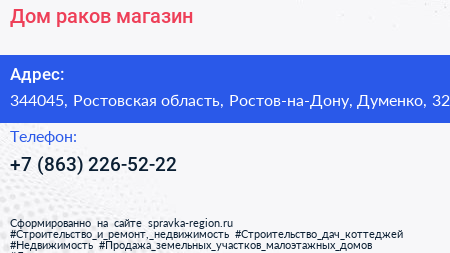 Дом раков, магазин по адресу 344045, Ростовская область, Ростов-на-Дону, Думенко, 32 в дальнейшем Организация, размещена в следующих категориях:
