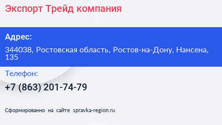 Экспорт-Трейд, компания по адресу 344038, Ростовская область, Ростов-на-Дону, Нансена, 135 в дальнейшем Организация, размещена в следующих категориях: