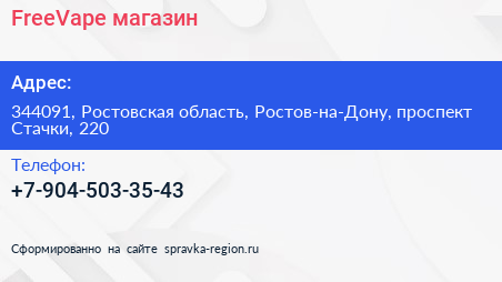 FreeVape, магазин по адресу 344091, Ростовская область, Ростов-на-Дону, проспект Стачки, 220 в дальнейшем Организация, размещена в следующих категориях: