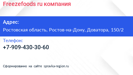 Freezefoods.ru, компания по адресу Ростовская область, Ростов-на-Дону, Доватора, 150/2 в дальнейшем Организация, размещена в следующих категориях: