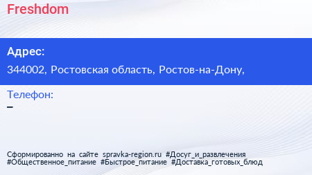 Freshdom по адресу 344002, Ростовская область, Ростов-на-Дону, в дальнейшем Организация, размещена в следующих категориях: