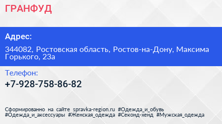ГРАНФУД по адресу 344082, Ростовская область, Ростов-на-Дону, Максима Горького, 23а в дальнейшем Организация, размещена в следующих категориях: