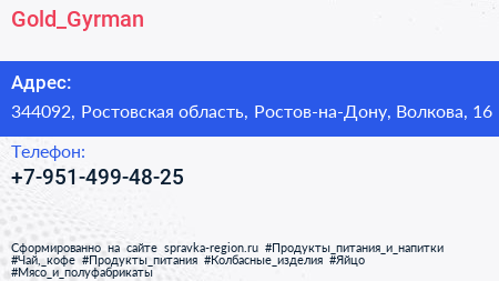 Gold_Gyrman по адресу 344092, Ростовская область, Ростов-на-Дону, Волкова, 16 в дальнейшем Организация, размещена в следующих категориях:
