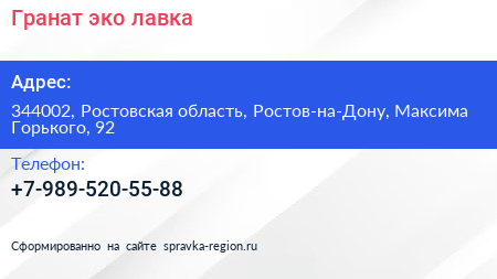 Гранат, эко-лавка по адресу 344002, Ростовская область, Ростов-на-Дону, Максима Горького, 92 в дальнейшем Организация, размещена в следующих категориях: