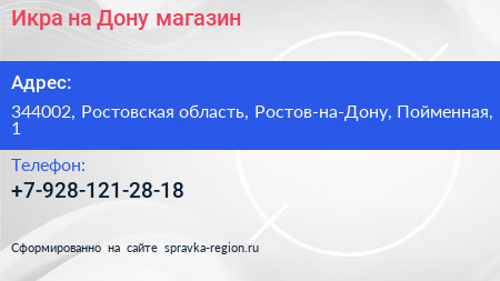 Икра на Дону, магазин по адресу 344002, Ростовская область, Ростов-на-Дону, Пойменная, 1 в дальнейшем Организация, размещена в следующих категориях: