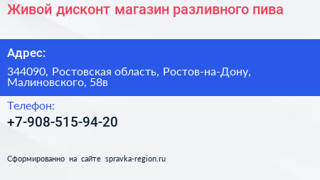 Живой дисконт, магазин разливного пива по адресу 344090, Ростовская область, Ростов-на-Дону, Малиновского, 58в в дальнейшем Организация, размещена в следующих категориях: