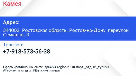 Камея по адресу 344002, Ростовская область, Ростов-на-Дону, переулок Семашко, 3 в дальнейшем Организация, размещена в следующих категориях: