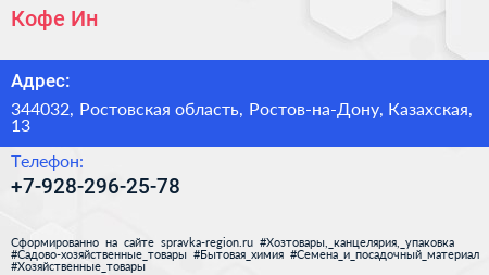 Кофе-Ин по адресу 344032, Ростовская область, Ростов-на-Дону, Казахская, 13 в дальнейшем Организация, размещена в следующих категориях: