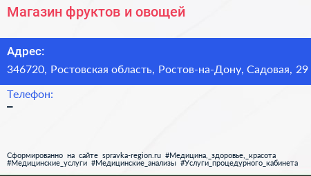 Магазин фруктов и овощей по адресу 346720, Ростовская область, Ростов-на-Дону, Садовая, 29 в дальнейшем Организация, размещена в следующих категориях: