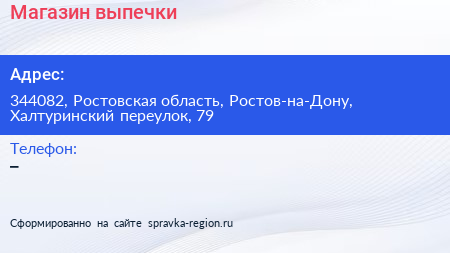 Магазин выпечки по адресу 344082, Ростовская область, Ростов-на-Дону, Халтуринский переулок, 79 в дальнейшем Организация, размещена в следующих категориях:
