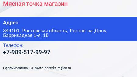 Мясная точка, магазин по адресу 344101, Ростовская область, Ростов-на-Дону, Баррикадная 1-я, 1Б в дальнейшем Организация, размещена в следующих категориях:
