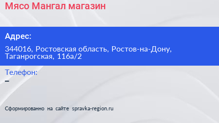 Мясо & Мангал, магазин по адресу 344016, Ростовская область, Ростов-на-Дону, Таганрогская, 116а/2 в дальнейшем Организация, размещена в следующих категориях: