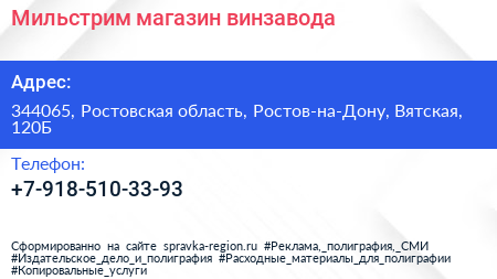 Мильстрим, магазин винзавода по адресу 344065, Ростовская область, Ростов-на-Дону, Вятская, 120Б в дальнейшем Организация, размещена в следующих категориях: