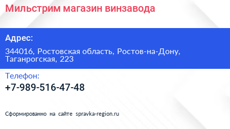Мильстрим, магазин винзавода по адресу 344016, Ростовская область, Ростов-на-Дону, Таганрогская, 223 в дальнейшем Организация, размещена в следующих категориях: