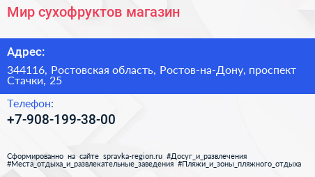 Мир сухофруктов, магазин по адресу 344116, Ростовская область, Ростов-на-Дону, проспект Стачки, 25 в дальнейшем Организация, размещена в следующих категориях: