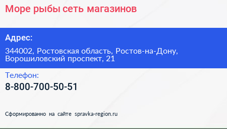 Море рыбы, сеть магазинов по адресу 344002, Ростовская область, Ростов-на-Дону, Ворошиловский проспект, 21 в дальнейшем Организация, размещена в следующих категориях: