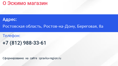 О! Эскимо, магазин по адресу Ростовская область, Ростов-на-Дону, Береговая, 8а в дальнейшем Организация, размещена в следующих категориях: