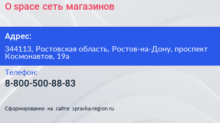O: spaсe, сеть магазинов по адресу 344113, Ростовская область, Ростов-на-Дону, проспект Космонавтов, 19а в дальнейшем Организация, размещена в следующих категориях: