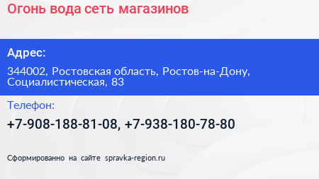 Огонь-вода, сеть магазинов по адресу 344002, Ростовская область, Ростов-на-Дону, Социалистическая, 83 в дальнейшем Организация, размещена в следующих категориях: