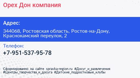 Орех Дон, компания по адресу 344068, Ростовская область, Ростов-на-Дону, Краснокамский переулок, 2 в дальнейшем Организация, размещена в следующих категориях: