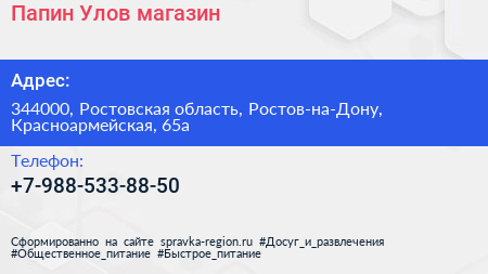 Папин Улов, магазин по адресу 344000, Ростовская область, Ростов-на-Дону, Красноармейская, 65а в дальнейшем Организация, размещена в следующих категориях: