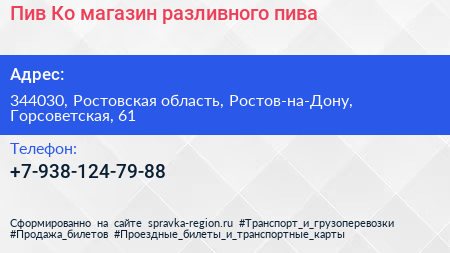 Пив & Ко, магазин разливного пива по адресу 344030, Ростовская область, Ростов-на-Дону, Горсоветская, 61 в дальнейшем Организация, размещена в следующих категориях: