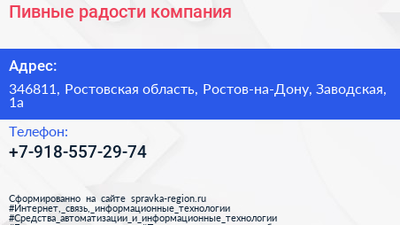 Пивные радости, компания по адресу 346811, Ростовская область, Ростов-на-Дону, Заводская, 1а в дальнейшем Организация, размещена в следующих категориях: