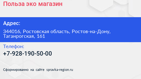 Польза, эко-магазин по адресу 344016, Ростовская область, Ростов-на-Дону, Таганрогская, 161 в дальнейшем Организация, размещена в следующих категориях: