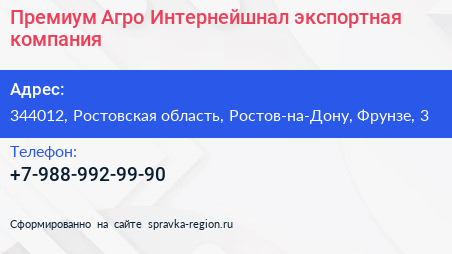 Премиум Агро Интернейшнал, экспортная компания по адресу 344012, Ростовская область, Ростов-на-Дону, Фрунзе, 3 в дальнейшем Организация, размещена в следующих категориях:
