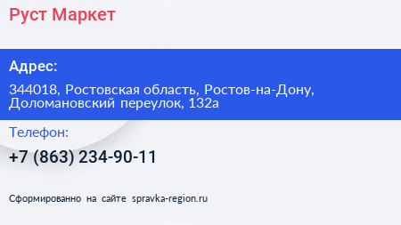 Руст Маркет по адресу 344018, Ростовская область, Ростов-на-Дону, Доломановский переулок, 132а в дальнейшем Организация, размещена в следующих категориях: