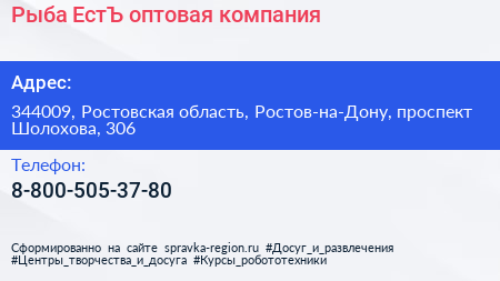 Рыба-ЕстЪ, оптовая компания по адресу 344009, Ростовская область, Ростов-на-Дону, проспект Шолохова, 306 в дальнейшем Организация, размещена в следующих категориях: