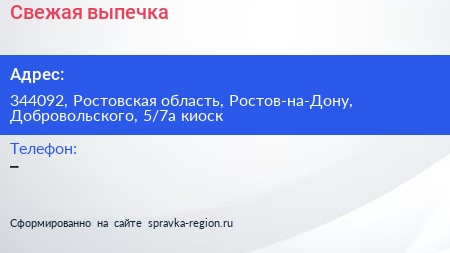 Свежая выпечка по адресу 344092, Ростовская область, Ростов-на-Дону, Добровольского, 5/7а киоск в дальнейшем Организация, размещена в следующих категориях: