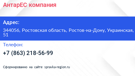 АнтарЕС, компания по адресу 344056, Ростовская область, Ростов-на-Дону, Украинская, 51 в дальнейшем Организация, размещена в следующих категориях: