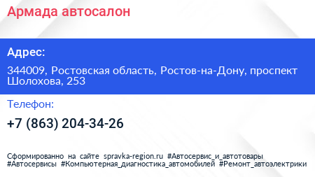 Армада, автосалон по адресу 344009, Ростовская область, Ростов-на-Дону, проспект Шолохова, 253 в дальнейшем Организация, размещена в следующих категориях: