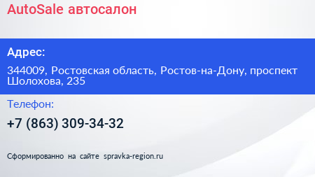 AutoSale, автосалон по адресу 344009, Ростовская область, Ростов-на-Дону, проспект Шолохова, 235 в дальнейшем Организация, размещена в следующих категориях: