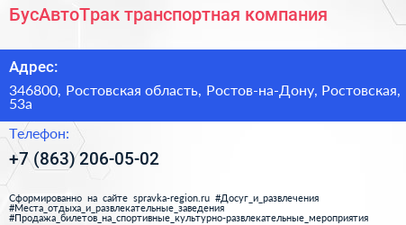 БусАвтоТрак, транспортная компания по адресу 346800, Ростовская область, Ростов-на-Дону, Ростовская, 53а в дальнейшем Организация, размещена в следующих категориях: